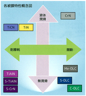 DLCは、ダイヤモンド狀非晶質(zhì)炭素皮膜コーティングDiamond Like Carbon coatingの略で、優(yōu)れた摺動性を持ちます。お客様のニーズにあわせて、各種コーティング皮膜を開発、ご提供させていただきます。