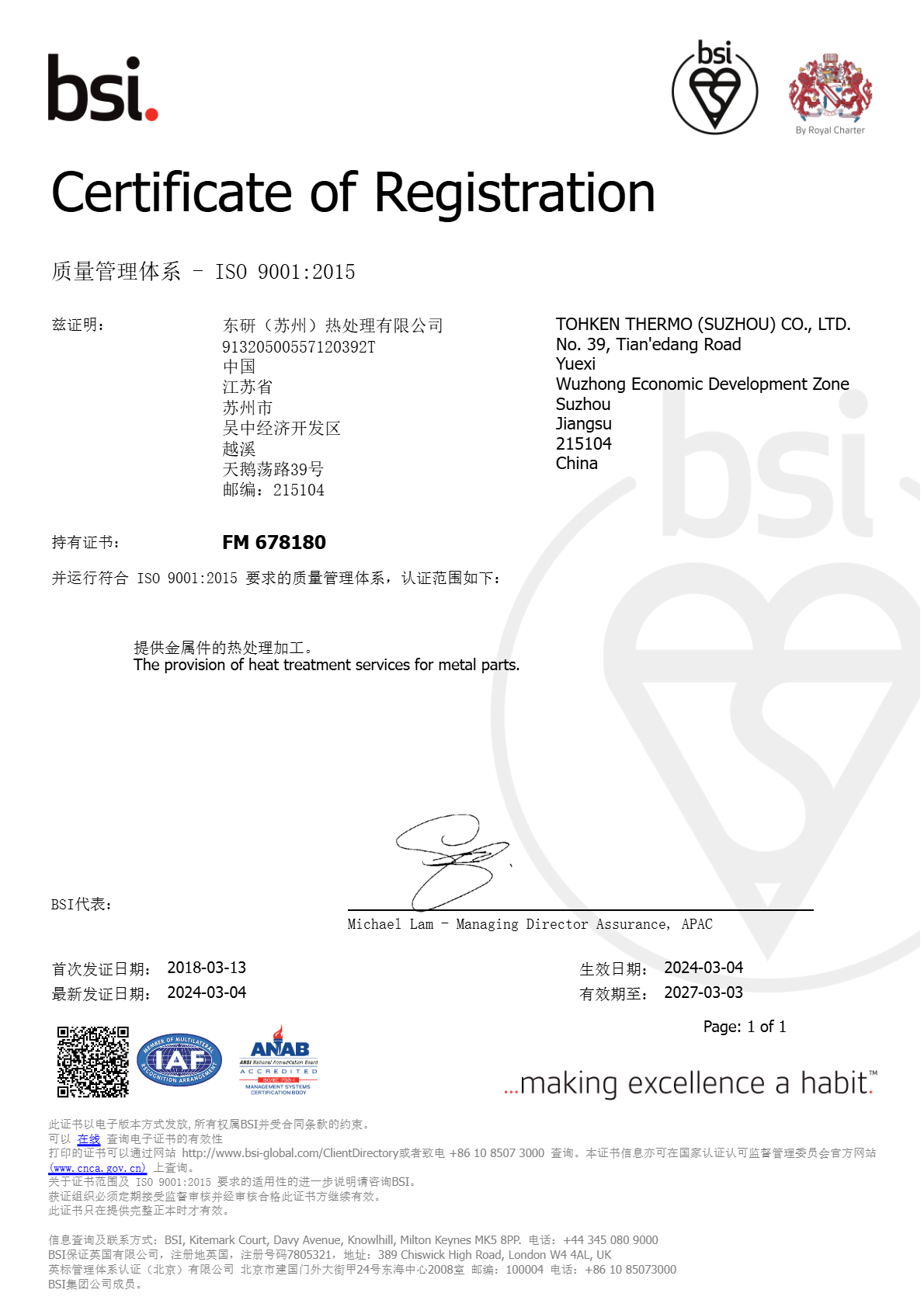 取得ISO14001:2015版升級(jí)認(rèn)證