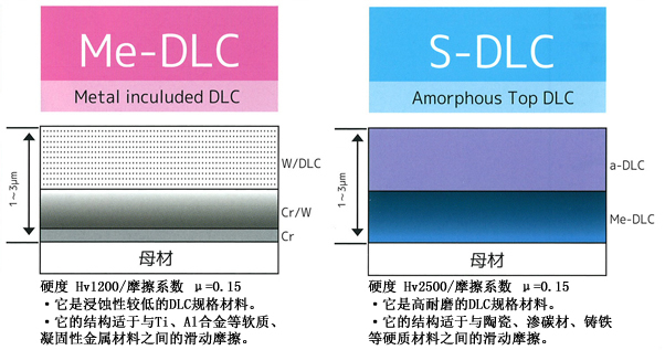 DLC為Diamond Like Carbon coating(類鉆碳)的縮寫,似金剛石狀的非晶質碳膜涂層,具有良好的滑動性能。根據(jù)顧客的需求,我公司開發(fā)并供應各種涂層皮膜。
